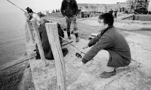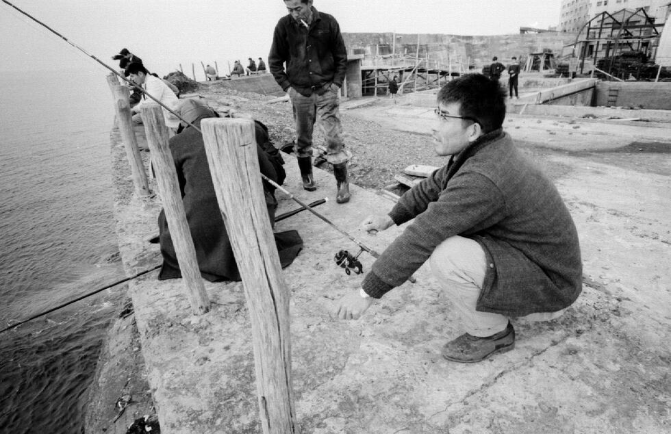 被写体:護岸上で釣りをする人