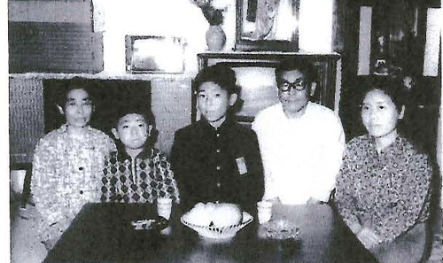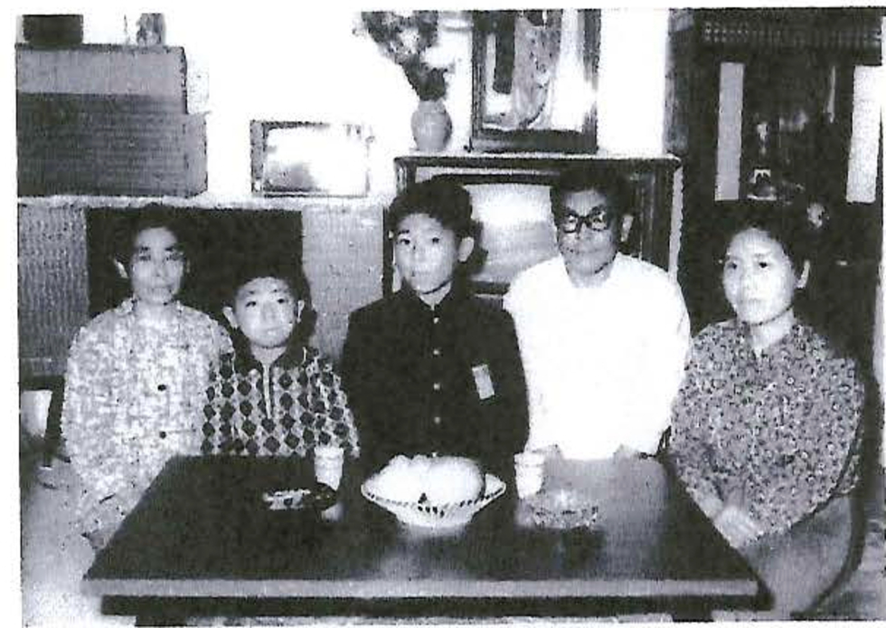 被写体:家族(右から妻・本人・長男・次男・母親) 坑内工作課伊藤様撮影