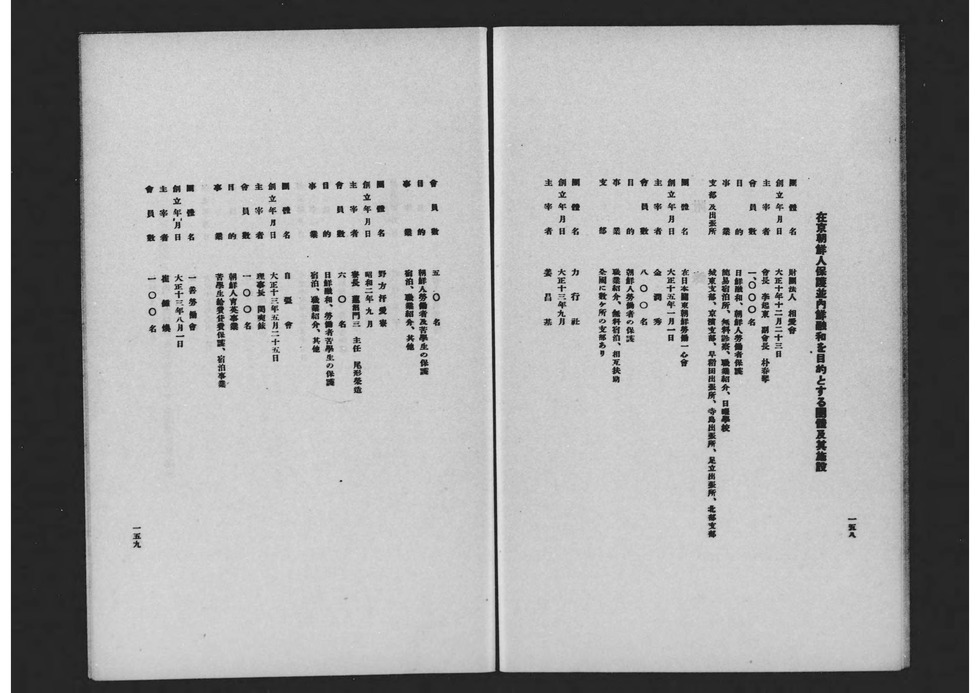 재경조선인보호 및 내선융화를 목적으로 하는 단체 및 시설