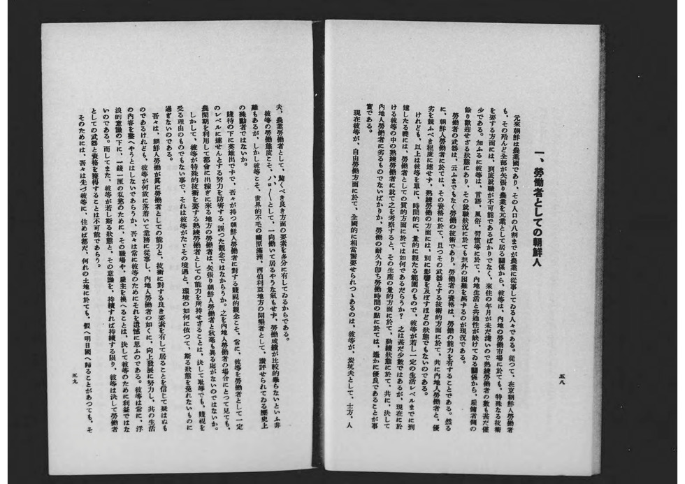 일찌기 구미 여러 선진국들은 역시 그 식민지 민족들을 위해, 특히 그 노동자를 위해 많은 사회상의 문제를 야기하여, 내치와 외교상 평화에 지장을 초래한 것은 우리도 잘 아는 바이다. 지금은 우리나라에서도 이 문제는 당면하게 되었다. 이 위기를 맞아 우리도 그 해결책에 대해서 여러 외국의 전철을 밟지 않도록 명심해야 한다고 생각한다.